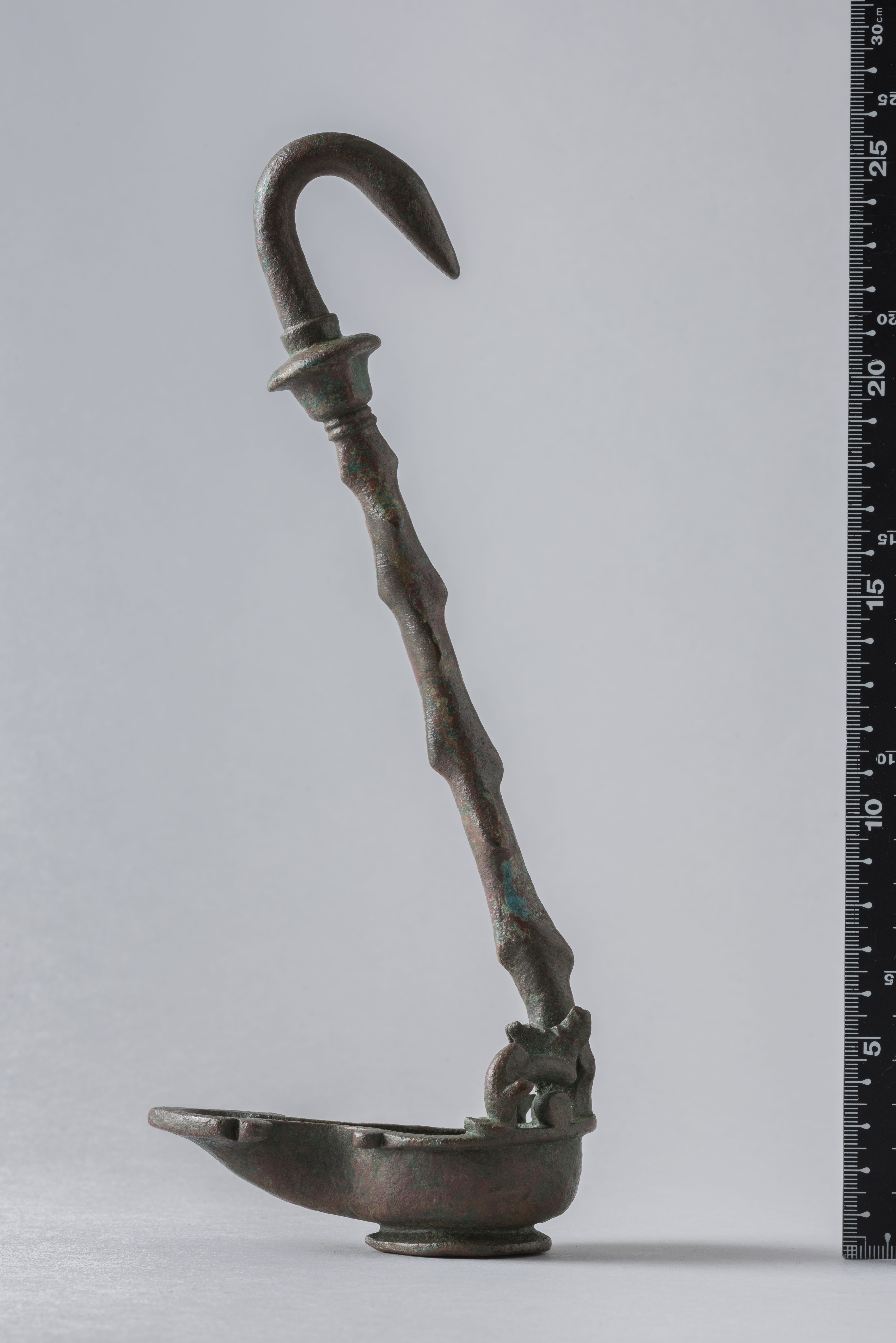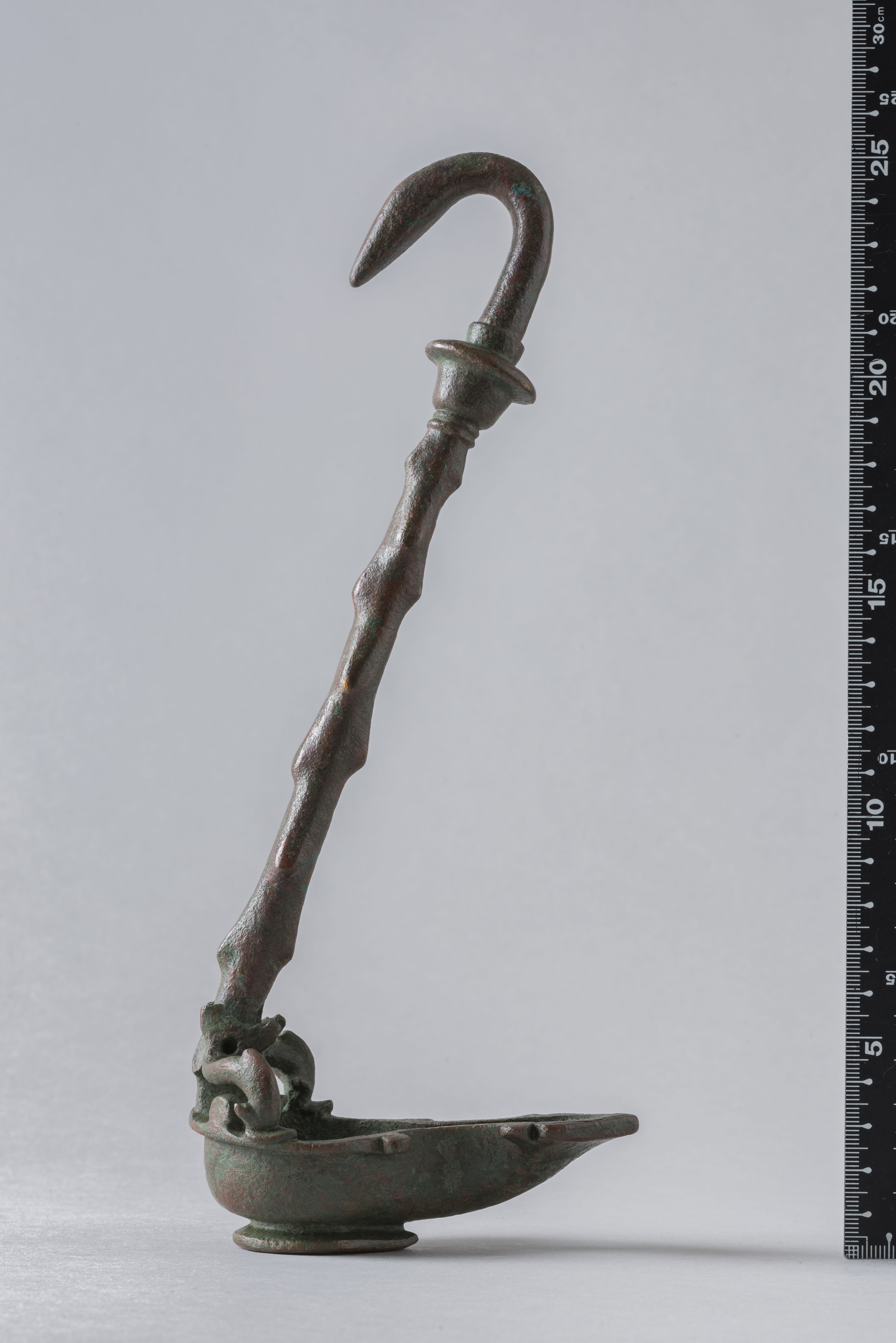 Lamp with long handle and snake-shaped hook