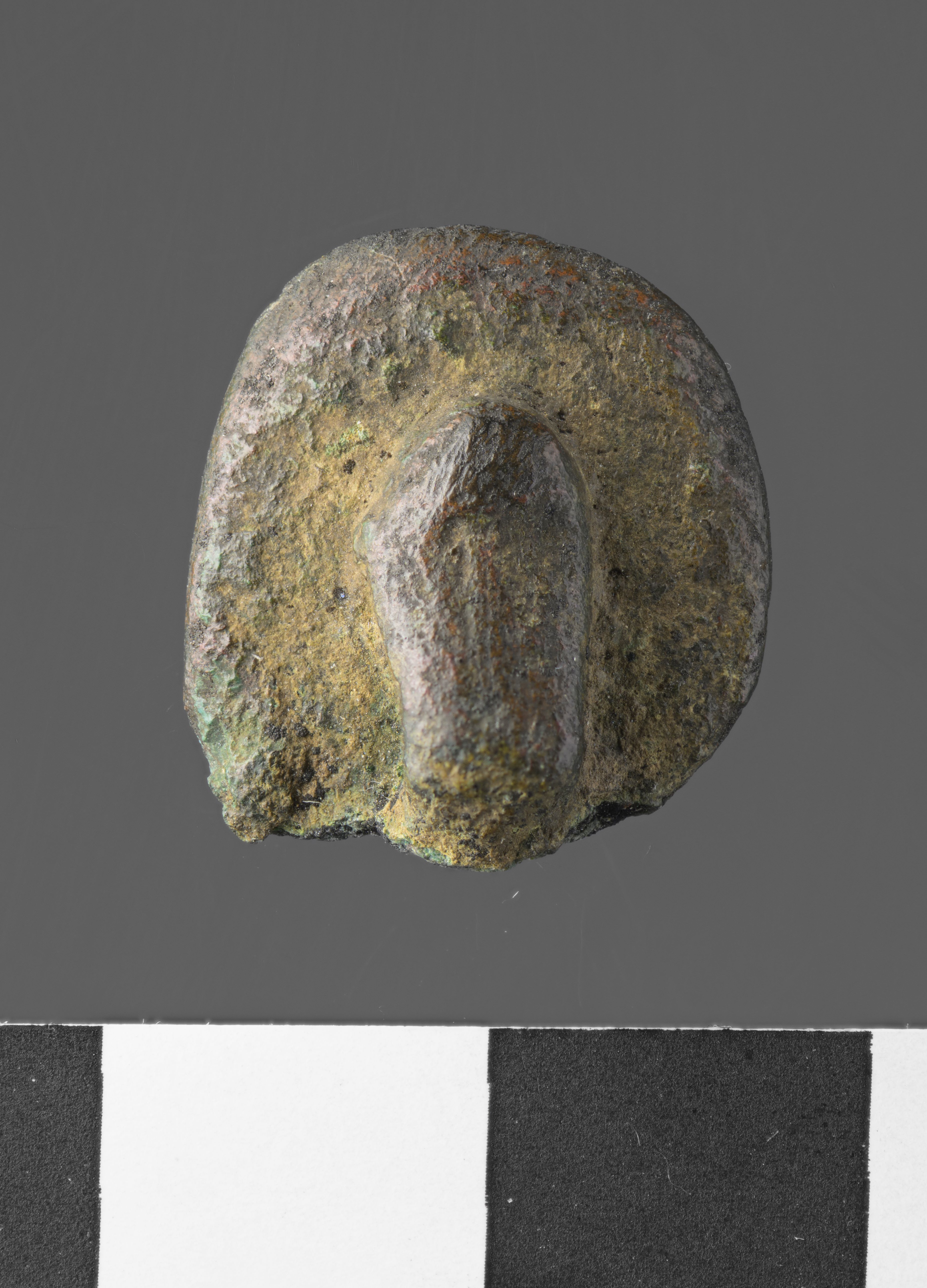 Solar disc with uraeus, part of a statuette. The object is made in the lost-wax technique for solid casts.